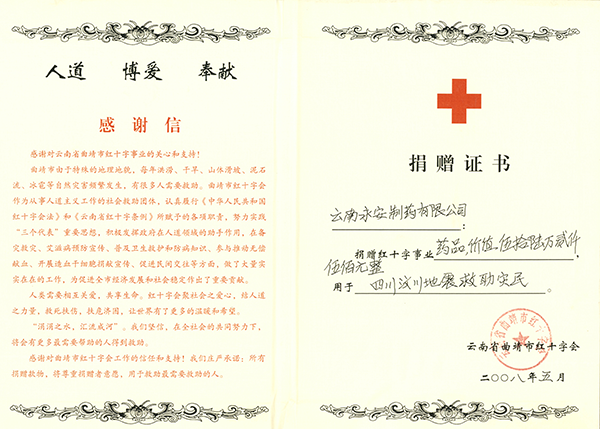 四川汶川地震捐贈(zèng)證書(2008年)