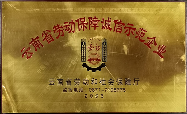 云南省勞動(dòng)保障誠(chéng)信示范企業(yè)(2006年)